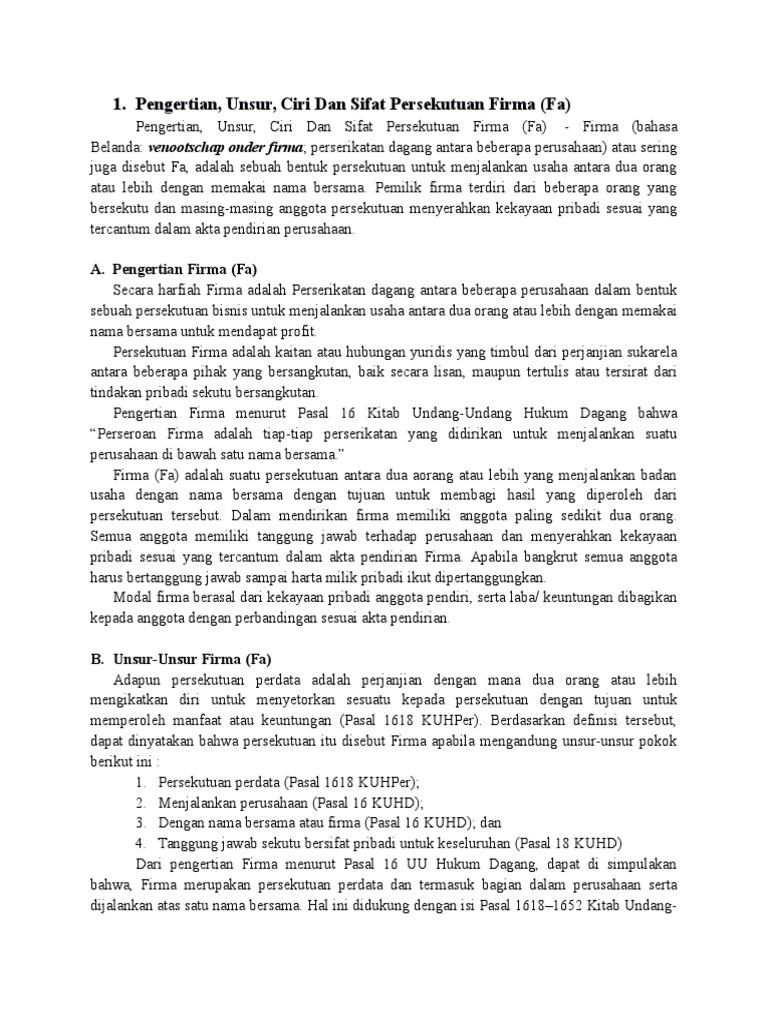 Mendirikan suatu perusahaan adalah sebuah keputusan strategis. Untuk mendirikan suatu badan usaha yang berbentuk firma. Beberapa contoh perusahaan cv maupun pt yang ada dan telah dikenal di indonesia ialah sebagai berikut. Oleh dua orang atau lebih yang disebut sekutu. Pihak yang berhak menuntut,pihak yang aktif disebut pihak yang berpiutang atau kreditor, sedangkan yang diwajibkan memenuhi tuntutan itu merupakan pihak yang pasif dan disebut pihak yang berhutang atau debitor.