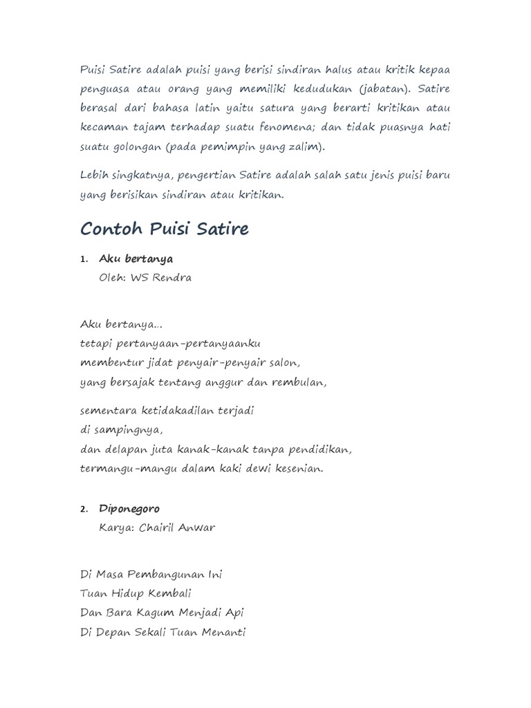 Selain puisi diatas ada juga puisi yang ga kalah seru seperti: Maman s mahayana (yayasan obor indonesia, 2014) universitas pakuan bogor, 21 februari 20 kajian sastra: Tuk meredan teriakan suara kritikan. Kumpulan contoh puisi tentang kritik sosial, pemerintah, alam, politik. Bis 11:30 uhr bestellen & lieferung erfolgt innerhalb von 24h.