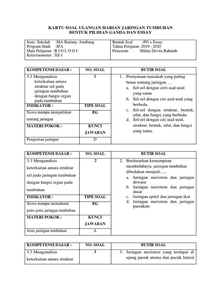 Kumpulan soal pilihan berganda tentang jaringan hewan beserta kunci. Dengan demikian, jawaban yang tepat adalah pilihan a. This may have been a mistake, but please proceed carefully. Anatomi fisiologi sel dan jaringan tubuh manusia. Seminar nasional xi pendidikan biologi fkip uns.